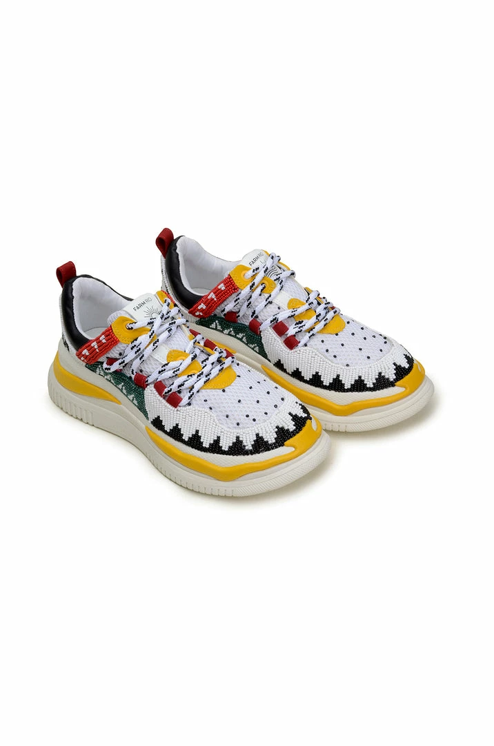 Walk in Happiness! The Multi Beaded Platform Sneaker features embroidered beads at the cotton upper and a rubber sole. Your FARM Rio Shoes match pretty much everything you have in your timeless wardrobe, from dresses to jumpsuits to pants (and all in between!).