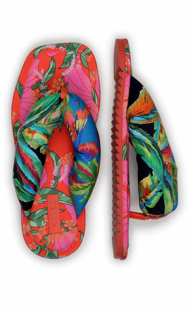 Walk in Happiness! The Multi Scarf Puffy Flip Flop features cotton straps with foam inside and a rubber sole with cotton detailing. Your FARM Rio Shoes match pretty much everything you have in your timeless wardrobe, from dresses to jumpsuits to pants (and all in between!).