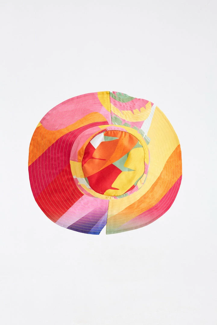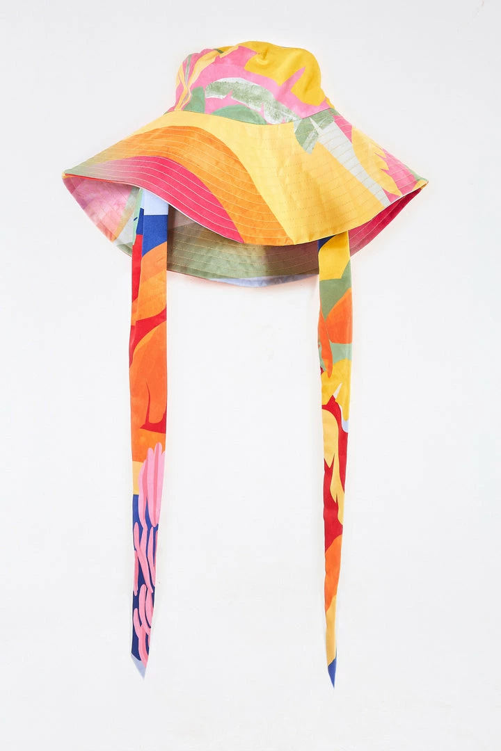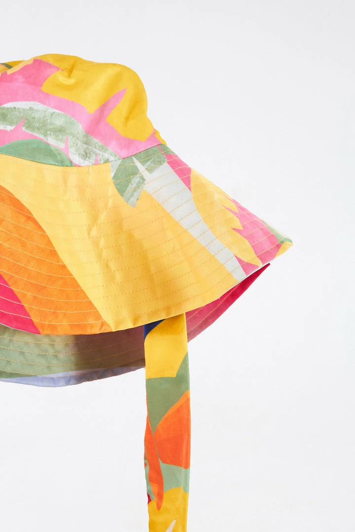 Happiness is right in your head: the Tropical Sunset Hat has a wide, slouchy brim to protect you and add a charming accent to your sunshine-ready looks at the same time. It’s finished with self-tie straps to adjust around your face.