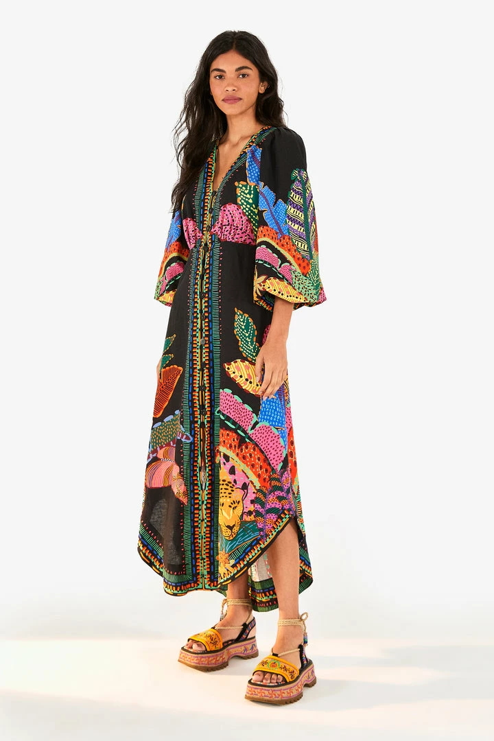 Make a cool statement wherever you’re going to shine, baby! The Black Cool Leopards Maxi Dress is your new wardrobe staple: an elegant shape, versatile buttons to wear it in fresh ways, and the print that will make you stand out from the basic crowd. The elastic cuffs help you roll up the sleeves for a relaxed look as well. Isn’t it what you’re looking for to unbutton sunny days ahead?