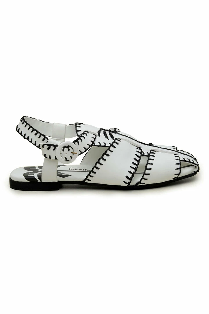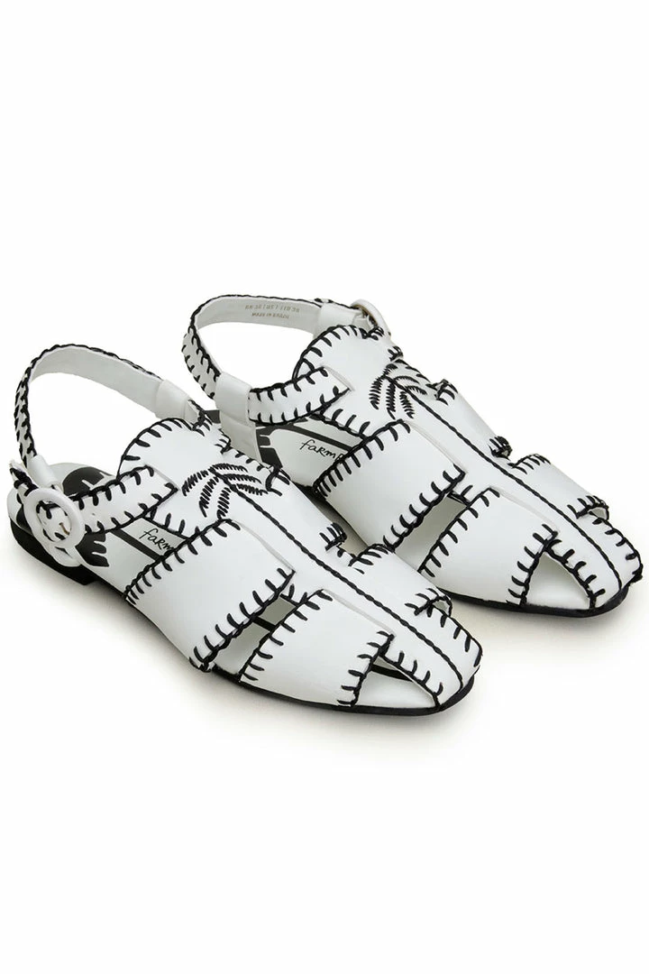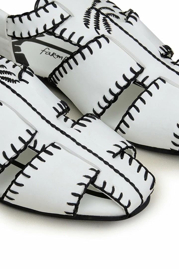 Walk in Happiness! The Black Palm Tree Sandal features vegan leather straps with thread embroidery and a rubber sole with vegan leather. Your FARM Rio Shoes match pretty much everything you have in your timeless wardrobe, from dresses to jumpsuits to pants (and all in between!).