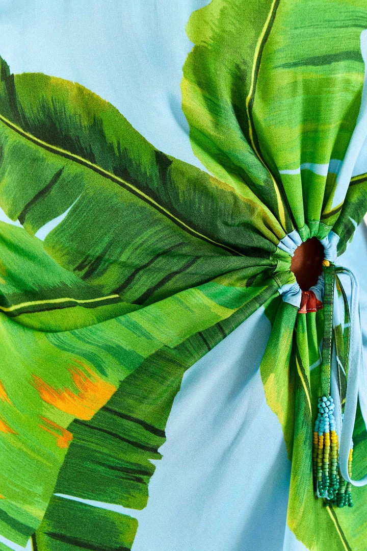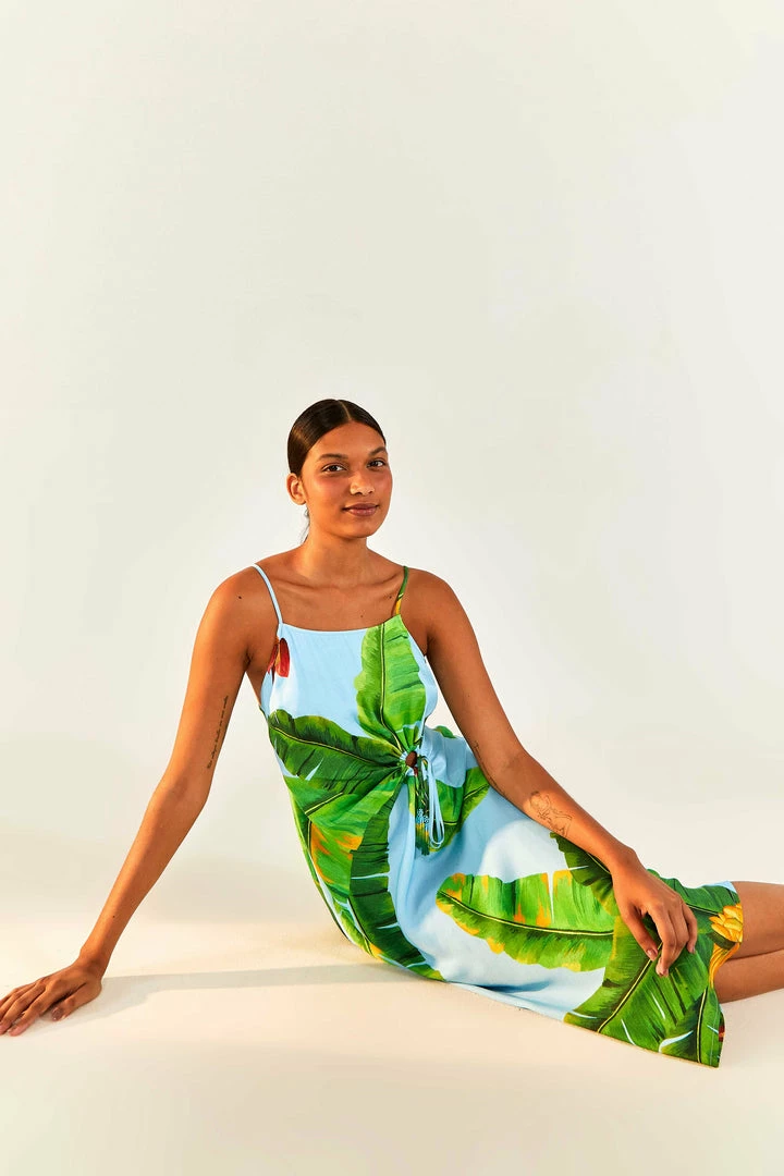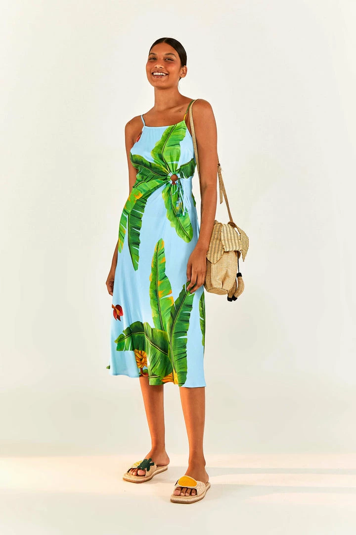 Ready to taste this delicious tropical fave? The Blue Fresh Bananas Midi Dress brings one of our must-have prints full of flavor! It features an easy fit with a head-turning cut-out detailing (have you noticed the beaded tassel? WOW!), and a skirt that follows your sunny moves. Pair it with fresh FARM Rio sandals and mules for a sun-filled look <3