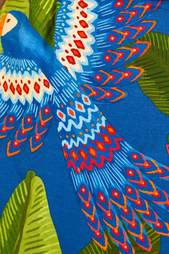 A tropical statement to make all season long: the Blue Macaw Mini Wrap Dress features all the detailing to stand out from the basic crowd! It has a head-turning bodice, a belt with tassels, a nature-inspired print, and the length is ideal for showing some legs. Invite fresh shoes and accessories for a sun-filled match!