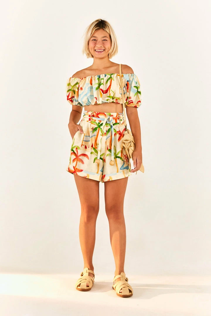 Wherever Summer leads you to have fun, you’re ready with the Copacabana Shorts! It features a fresh fit with an adjustable waistline and a belt with wooden tassels to level up your looks. The length is perfect for reintroducing your legs to the sun, isn’t it? And the Copacabana Off-Shoulder Crop Top is just waiting to hang around with you and your new fave shorts <3
