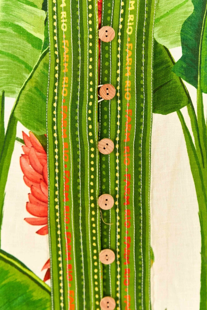 A fave full of tropical nature: the Fresh Forest Scarf Button-Down Mini Dress is what you need to get the best of your sunny season. It has a silhouette that hugs you, a cute neckline, and a must-have print to be the staple you’ll wear on repeat. With FARM Rio sandals on or even barefoot, you’ll be ready to shine everywhere!