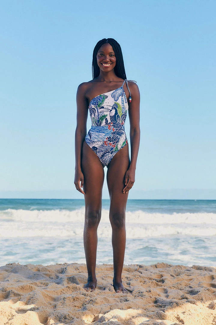 We prove you can shine everywhere, from the beach to the city and beyond with the Graphic Rio One-Piece Swimsuit! Its skin-tight fit with a one-shoulder neckline allows you to show some skin without losing comfort, and the beaded tassels will make you stand out from the beach crowd. And if you’re dealing with some breeze, bring a cover-up to this sand party!