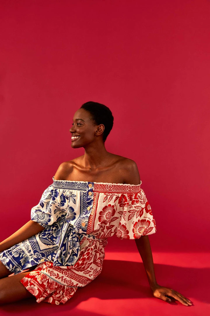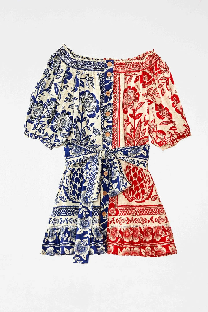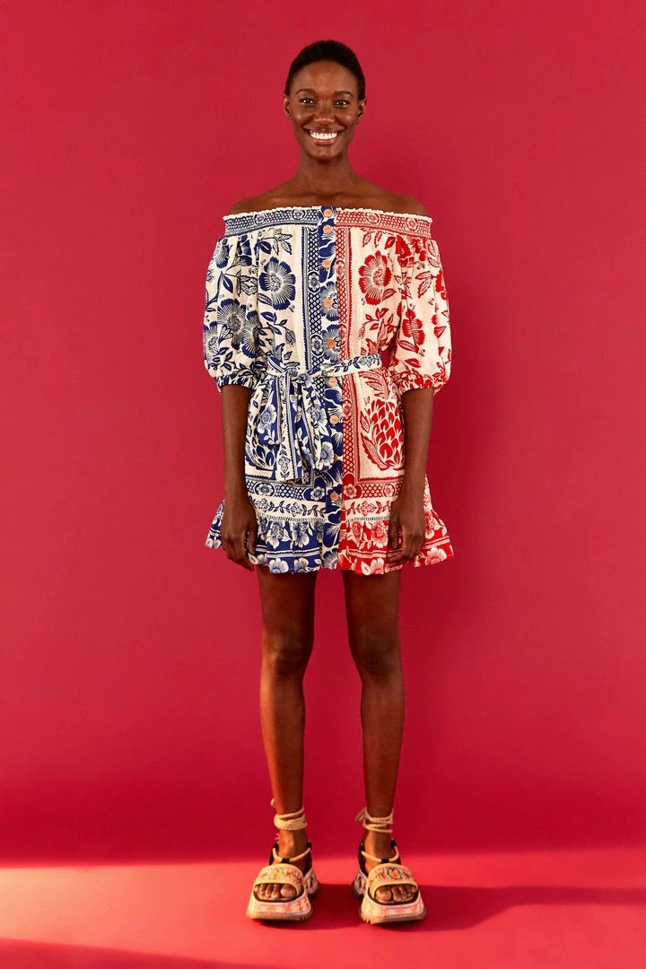 You just found one more reason to spread joy this season: the Mixed Pineapple Garden Off Shoulder Mini Dress is your new wardrobe staple! It features a cozy fit with versatile buttons to style it in fresh ways. The unique neckline and mini length are what you need to finally show some skin again. It matches all your cool sandals and happy plans 🙂