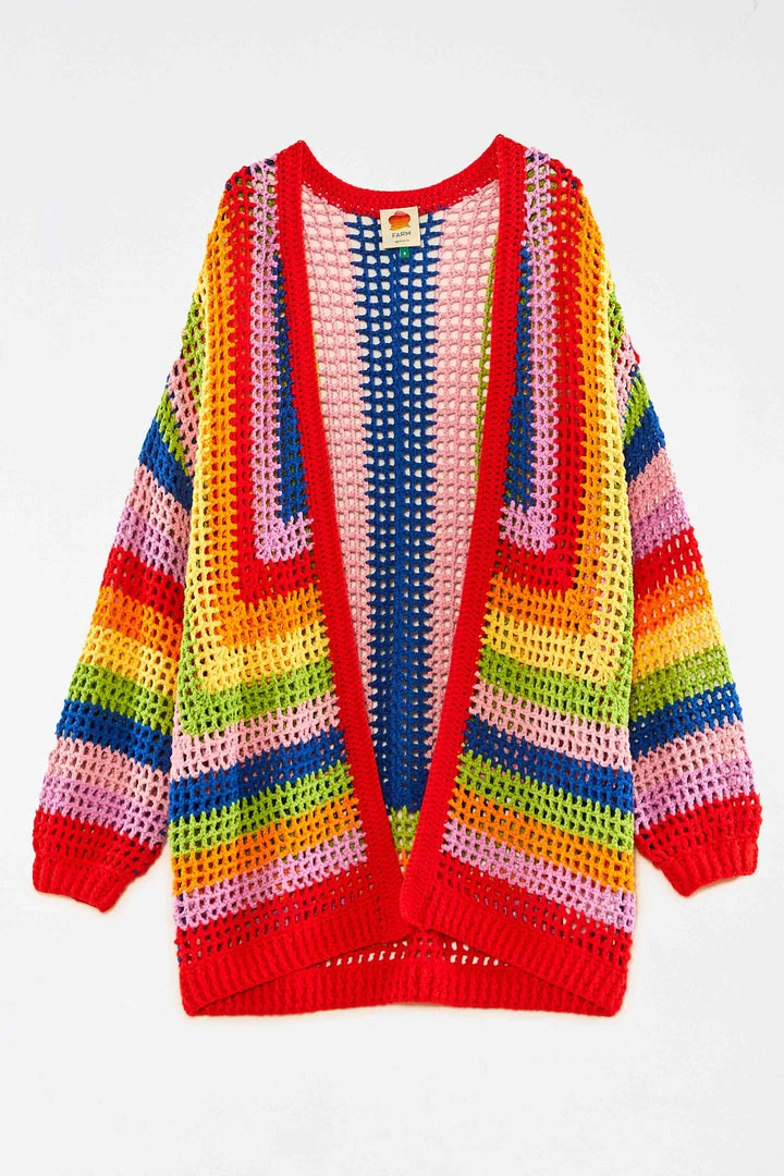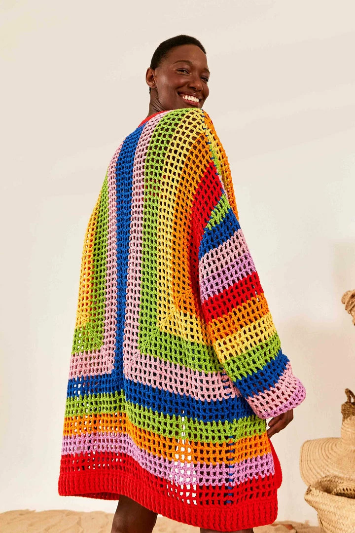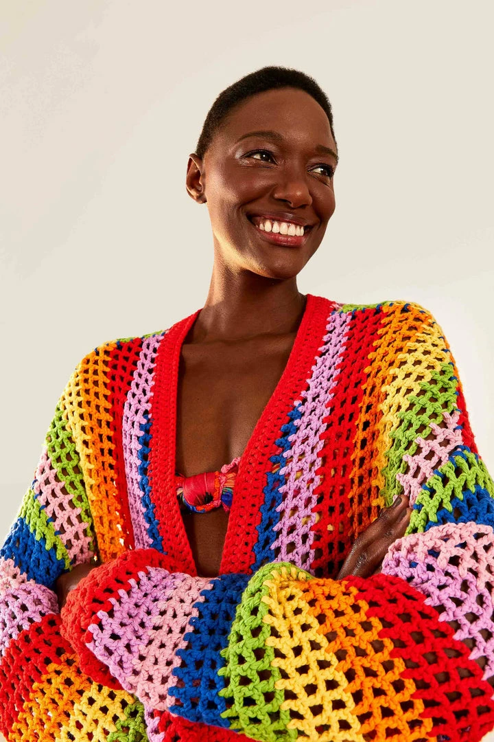 You just found the Summer fave to leave people speechless everywhere! The Multicolor Crochet Cardigan brings our artisanal vibe in all the colors you love to spread joy. Do you know who would also love to join this colorful combo? All your cool tops & bottoms (printed or not, you name it!). Invite also your bold FARM Rio Shoes and go have fun, baby <3