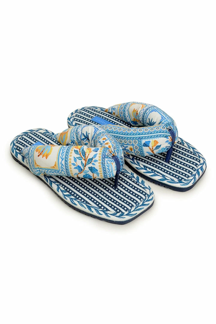 Walk in Happiness! The Navy Puffy Flip Flop features a puffy cotton upper with foam inside and a rubber sole. Your FARM Rio Shoes match pretty much everything you have in your timeless wardrobe, from dresses to jumpsuits to pants (and all in between!).