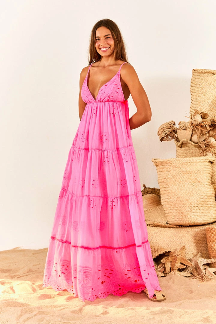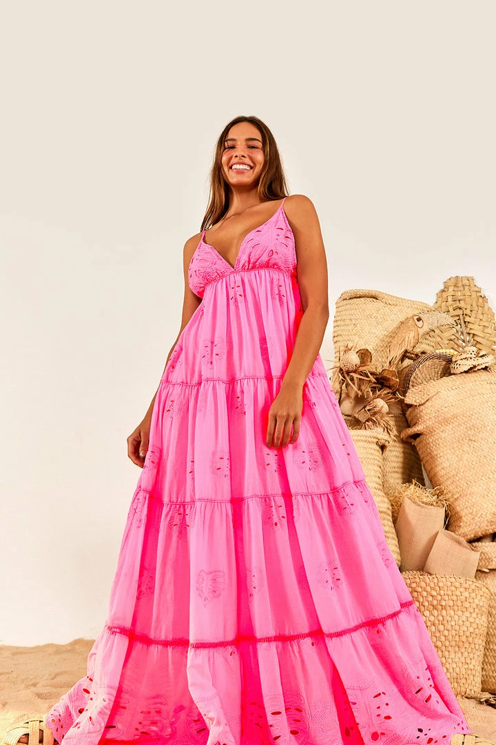 That’s the new definition of a solid traffic-stopping fave to call your own! The Neon Pink Maxi Dress is a fresh way to enjoy sunny days because of its cozy fit with lace detailing that goes with your Summer flow. Invite colorful FARM Rio Shoes to spread joy with you and your fave dress wherever you’re going to follow the sun 🙂