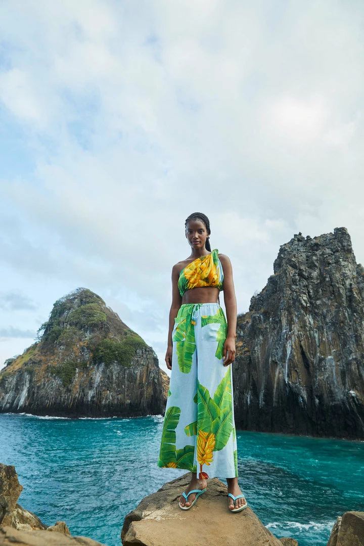 Ready to taste this delicious tropical fave? The Blue Fresh Bananas One Shoulder Knot Top brings one of our must-have prints full of flavor! It features a cozy fit with a knot detailing to drop some jaws around you. We think the Blue Fresh Bananas Pants are the cutest match for your new top, and you can also invite fresh FARM Rio sandals and mules to complete your solar look <3