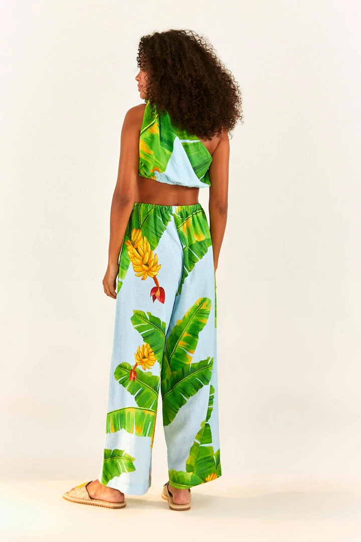 Ready to taste this delicious tropical fave? The Blue Fresh Bananas Pants bring one of our must-have prints full of flavor! It features a relaxed fit with ties and beaded tassels to follow your sunny moves. We think the Blue Fresh Bananas One-Shoulder Knot Top is the cutest match for your new pants, and you can also invite fresh FARM Rio sandals and mules to complete your sun-filled look <3