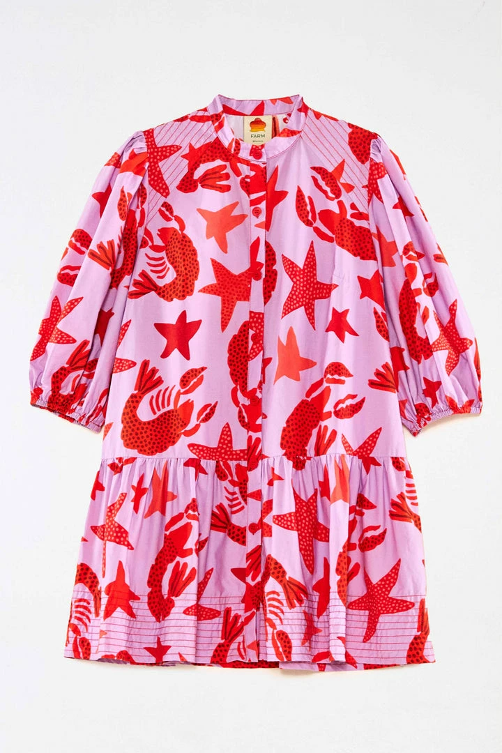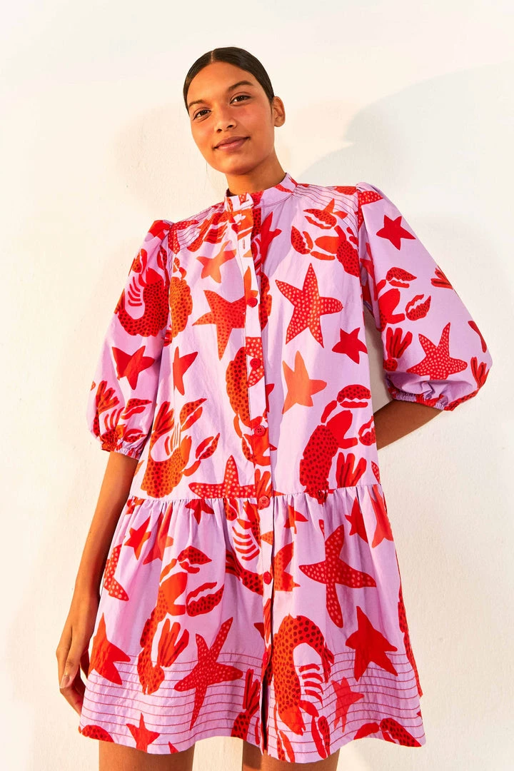 If this isn’t a summery combination of colors and tropical elements, we don’t know what it is! The Lobster Sky Mini Dress invites you to dive all into the coziest fit with seam detailing, a skirt to show some skin again, and one of our must-have prints for the season.