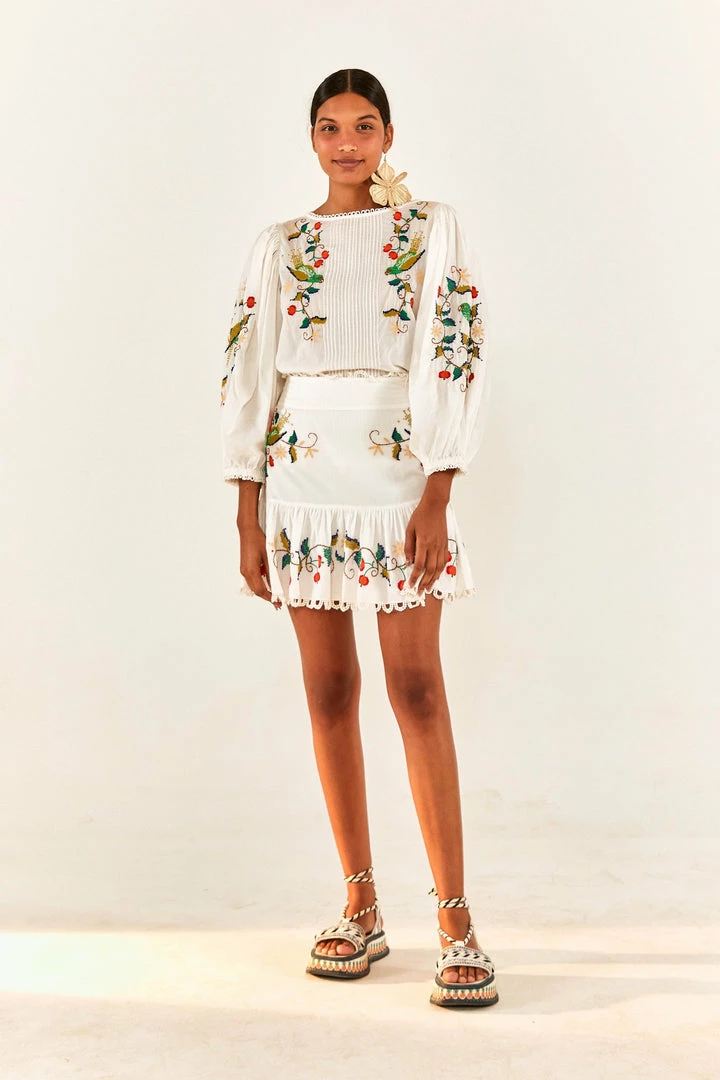 Make a romantic-yet-cool statement this season <3 The Pitanga Embroidered Mini Skirt lands here to be the cutest companion to your lonely tops (btw, it’s the perfect match for the Pitanga Embroidered Blouse!). It features a love-forever embroidered work in a cozy fit with lace detailing. So get ready to invite your FARM Rio Shoes to complete your sunny look and go spread joy all around!