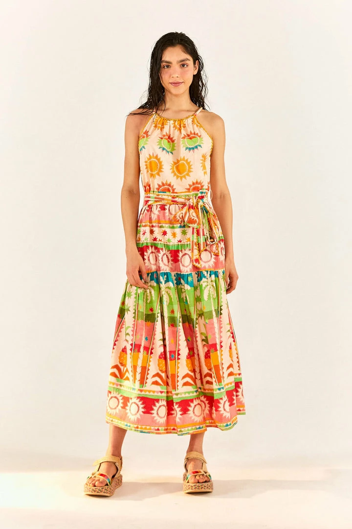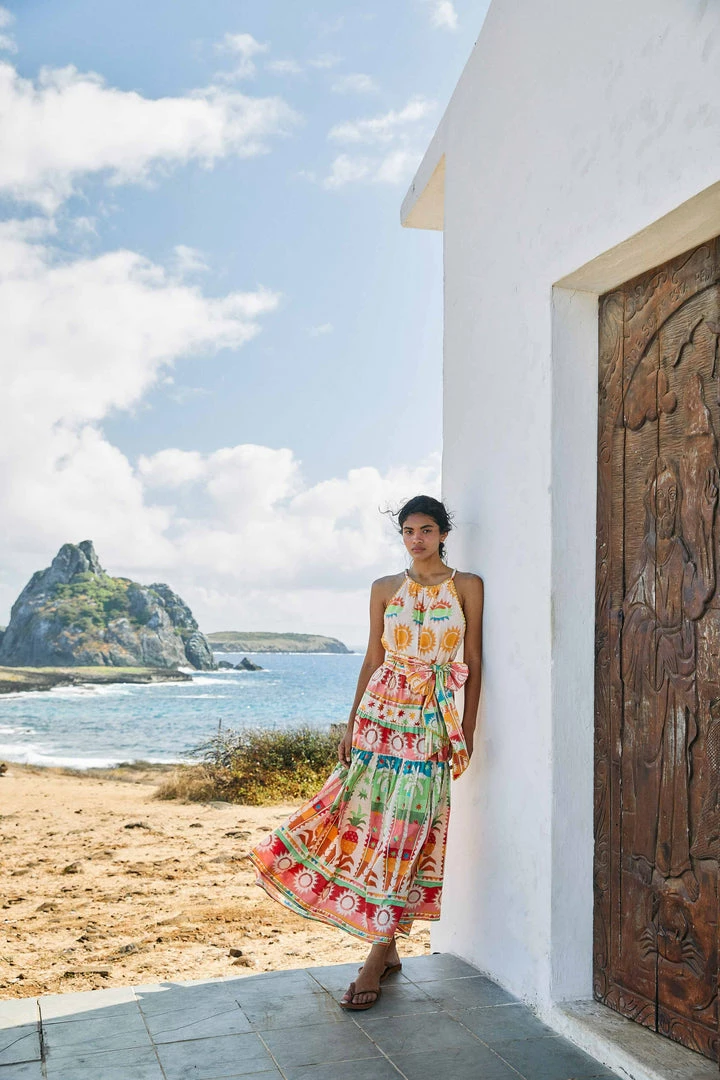 Bring all the colorful elements you love to spread joy with the Rainbow Sunset Halter Neck Maxi Dress! It features a standout neckline, delicate crochet detailing, a flowy skirt to follow your sunny moves, and one of our must-have prints for the season. And, of course, your fave FARM Rio Shoes are very welcome to complete this Summer-ready vibe <3
