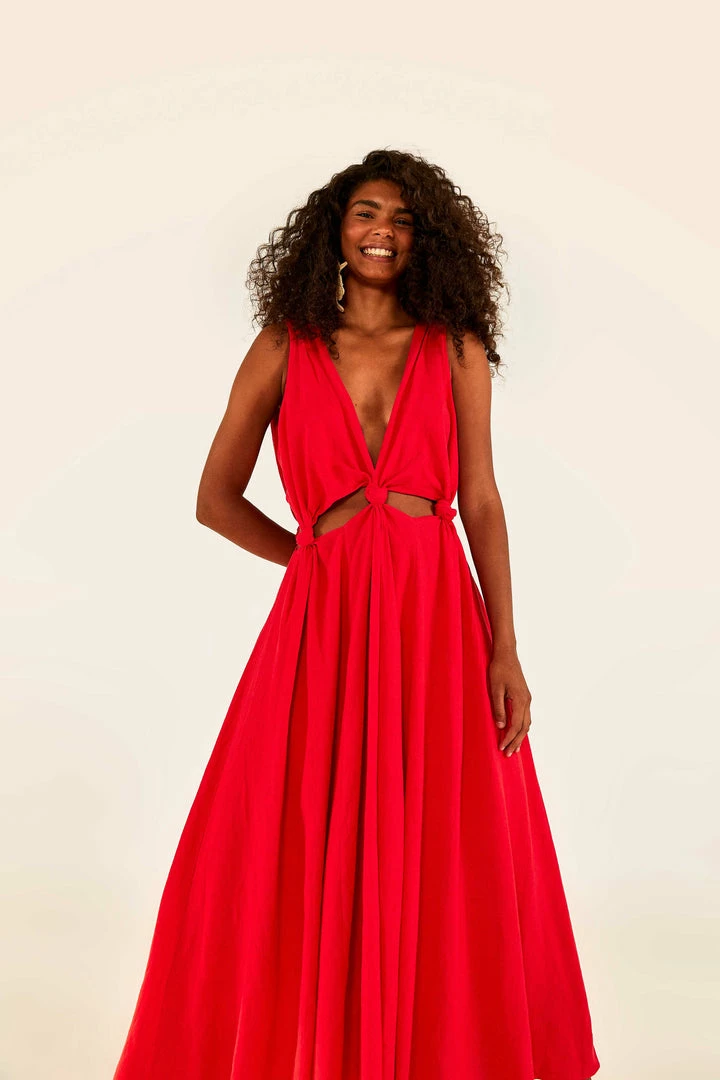 A solid statement of what making a bold impression means to you. The Red Cut-Out Midi Dress is here in the most fancy-yet-cool silhouette you can find out there! It also features a plunging neckline and cut-out detailing to level up whatever sunny plans you have in mind. This red dress matches your fresh FARM Rio Shoes from slides to mules (and everything in between!).