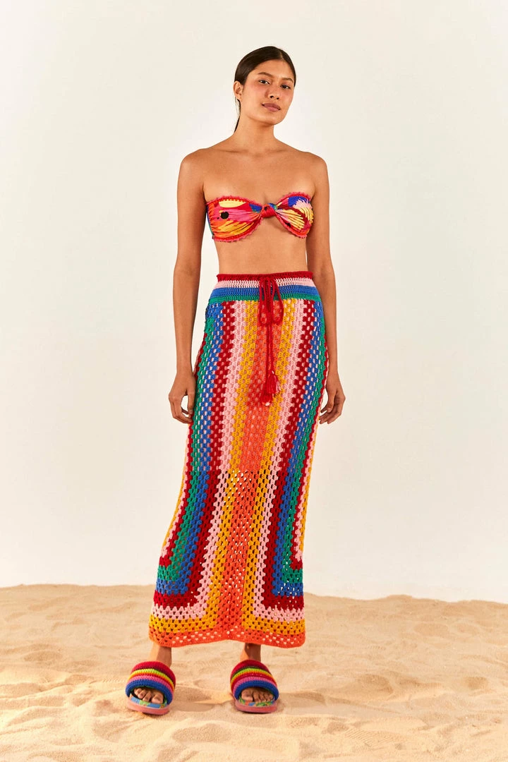 Your new fancy-yet-cool way to dress in happiness! The Striped Scarf Crochet Midi Skirt will walk you through any sunny season with its slim fit and the crochet style you love. Invite your colorful tops and cool FARM Rio Shoes to join your awe-inspiring combo <3