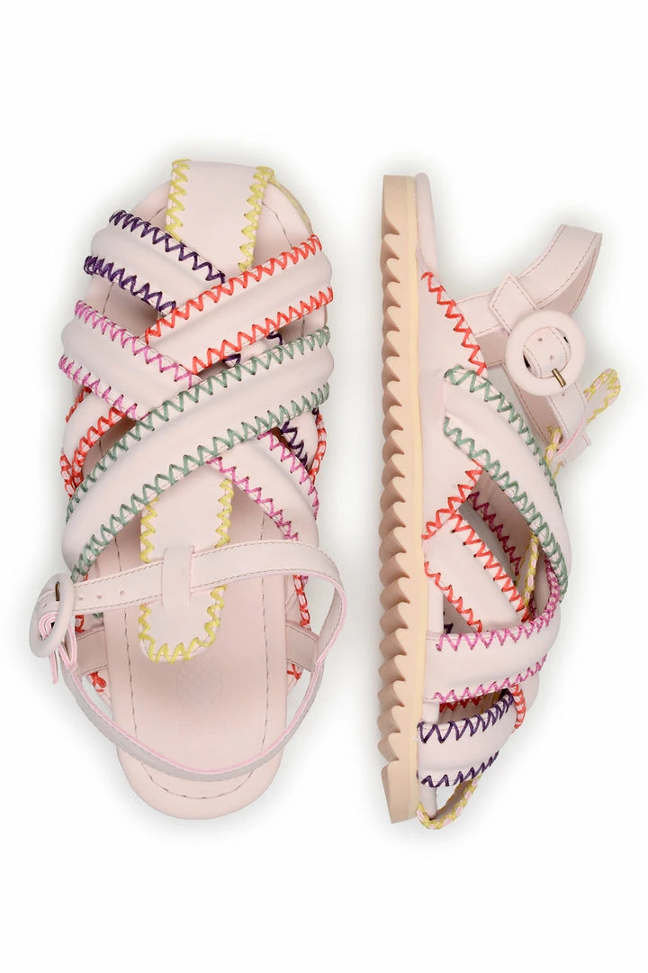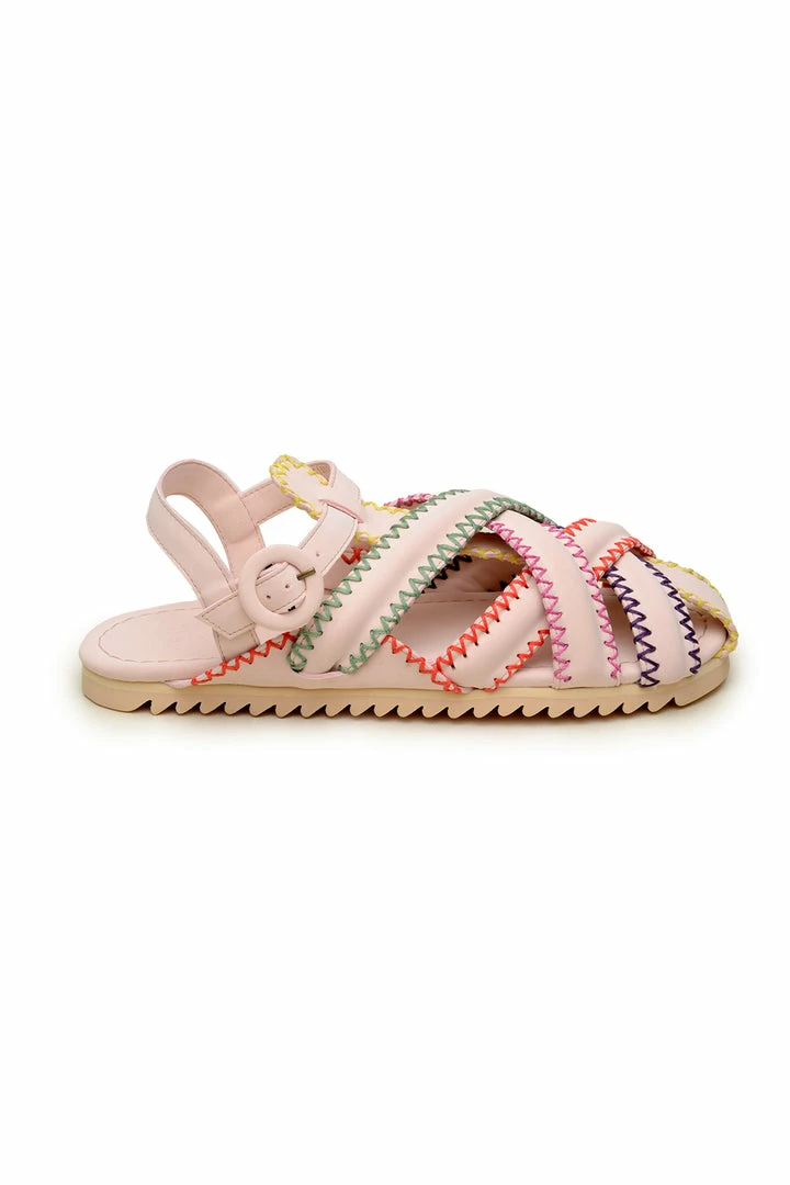 Walk in Happiness! The Nude Zigzag Sandal features vegan leather straps with seam detailing and a rubber sole with vegan leather. Your FARM Rio Shoes match pretty much everything you have in your timeless wardrobe, from dresses to jumpsuits to pants (and all in between!).