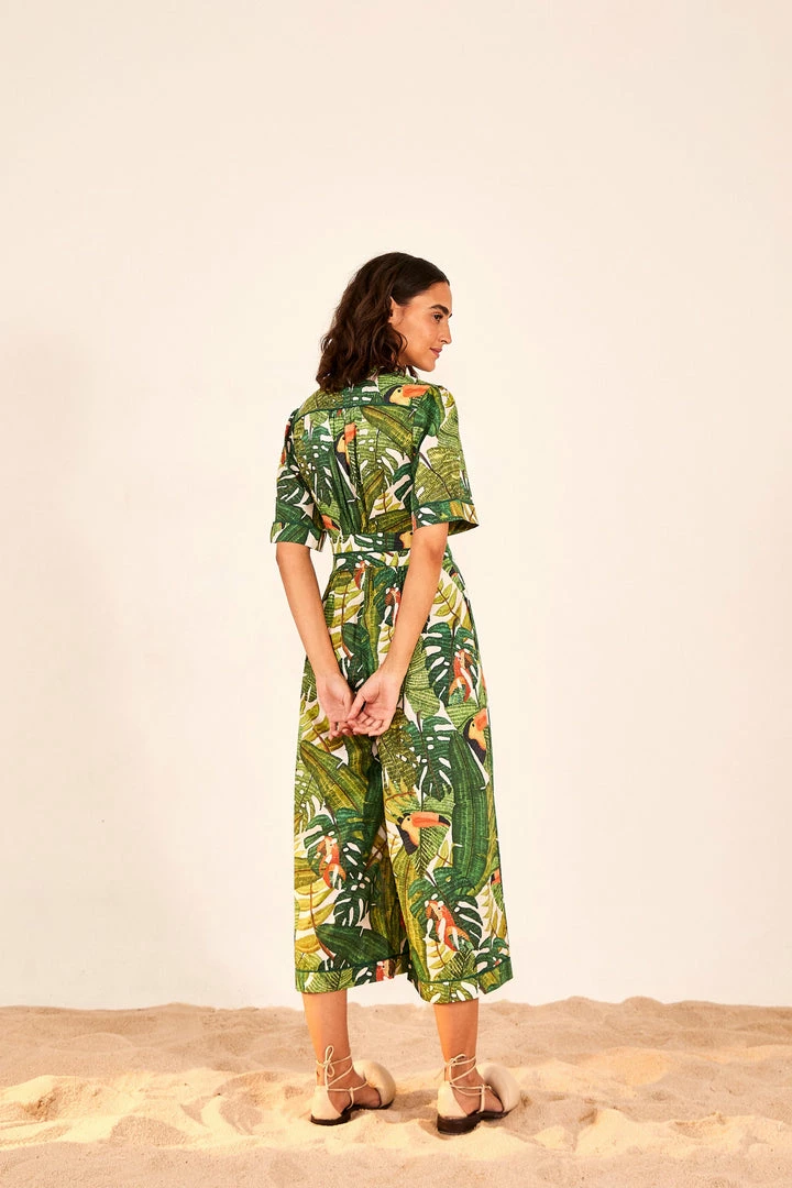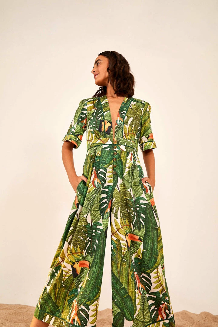 Keep your style on point with this sunny fave: the Paradise Forest Jumpsuit is a fresh-yet-chic option for your timeless wardrobe. Its fit hugs you in the right places, and the elongated neckline shows some skin. A perfect fit to all your bold shoes.