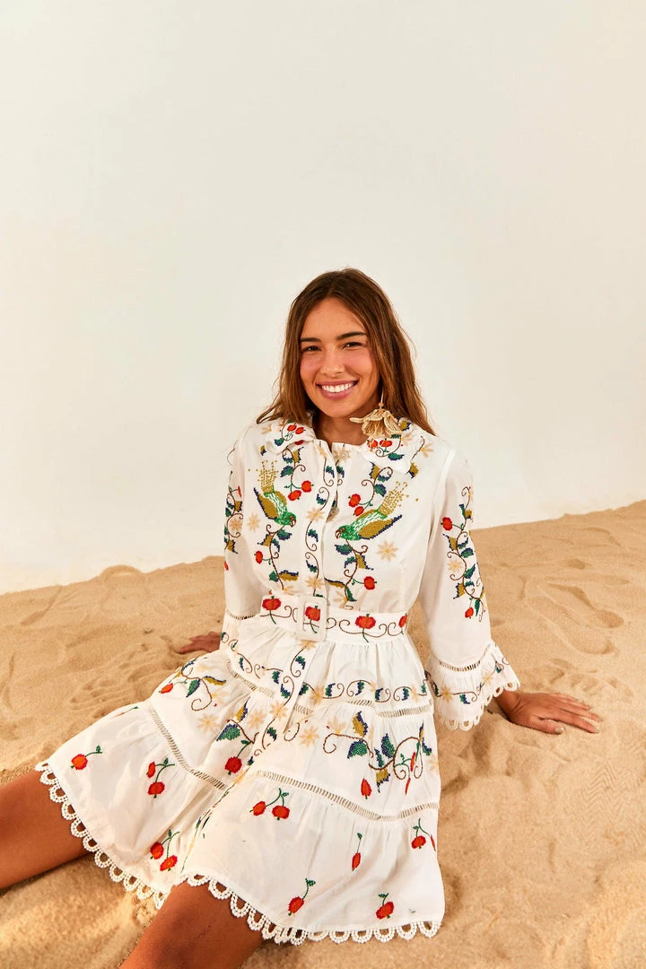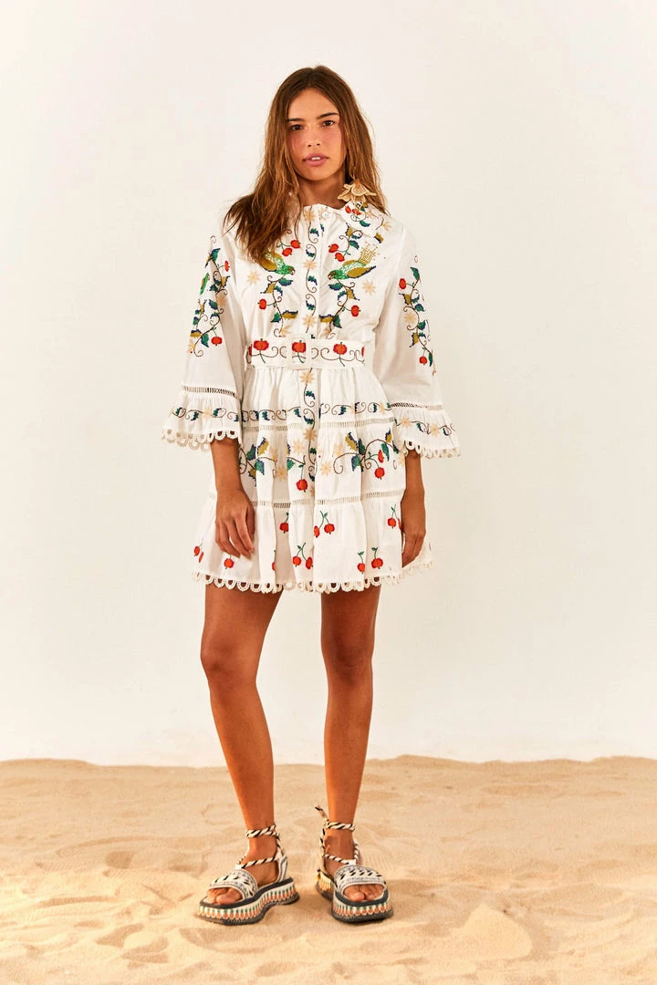 What a delicious Summer it will be! The Pitanga Embroidered Belted Mini Dress is a versatile piece to walk you from the city to the beach (and all places in between!). It has a cozy fit, jaw-dropping lace detailing and embroidered work, and the perfect length to show some legs. So what are you waiting for to add this cute dress to your best sunny plans?
