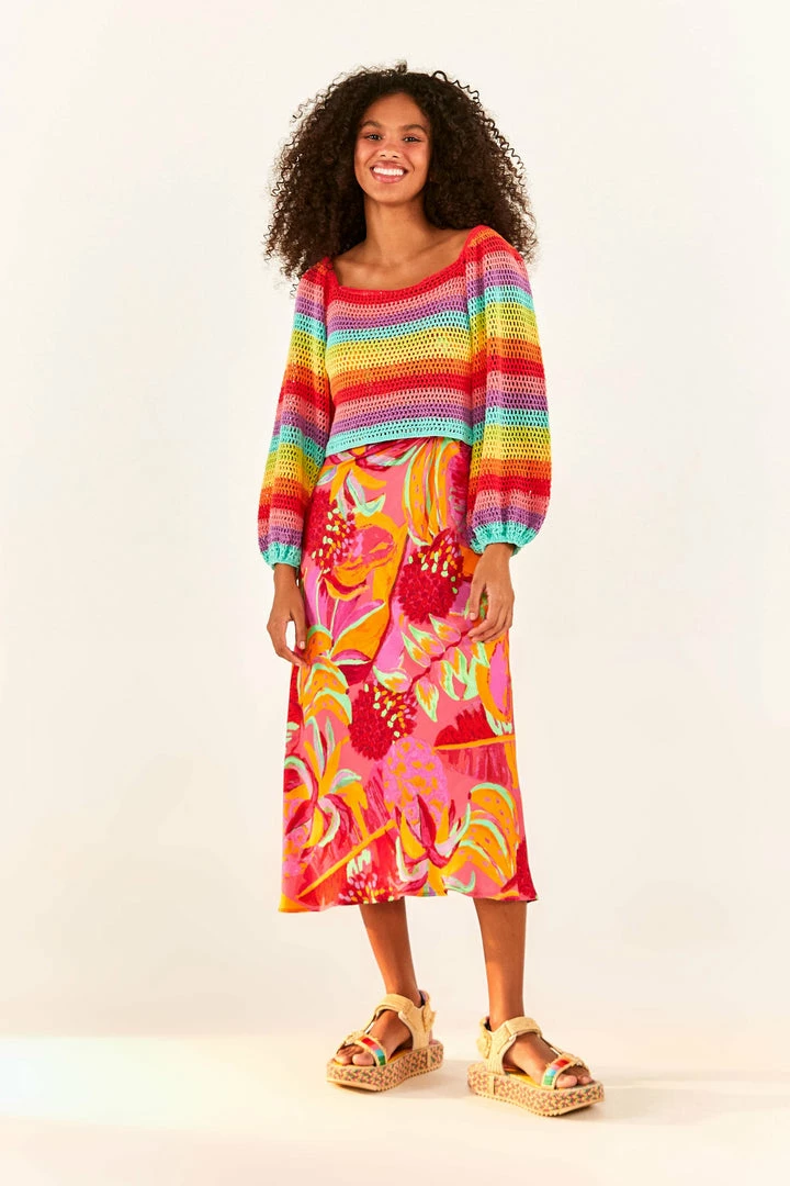 Your new fancy-yet-cool way to dress in happiness! The Striped Multicolor Crochet Pullover will walk you through any sunny season with its cozy fit, long sleeves, and the crochet style you love. This colorful top is the perfect match for pretty much all your bottoms, from printed skirts to solid denim (and everything in between!). Bring cool FARM Rio Shoes to complete this joyful combo <3