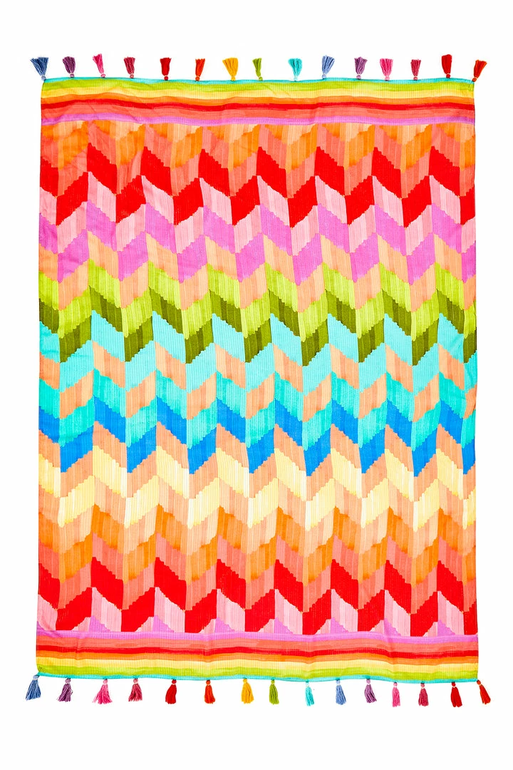 Meet your new buddy to have fun in the sun! The Light Chevron Sarong comes to brighten up any day by the beach and beyond with its head-turning print and WOW colorful tassels. You can wrap it around your waist to match your swimwear faves or soak up the sun lying on the sand.