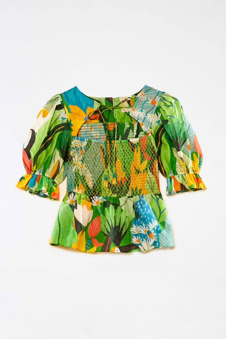 Well, your fresh bottoms just found the perfect couple <3 The Vintage Toucans Smocked Blouse is not just cool but a romantic statement to make for seasons ahead! It has a cozy fit, a nature-inspired print, and eye-catching lace detailing. What are you waiting for to give your wardrobe this colorful gift? Together with @institutovidalivre, FARM Rio contributes to the freedom of wild animals in Brazil. By purchasing this piece, you also support the preservation of our Brazilian fauna.