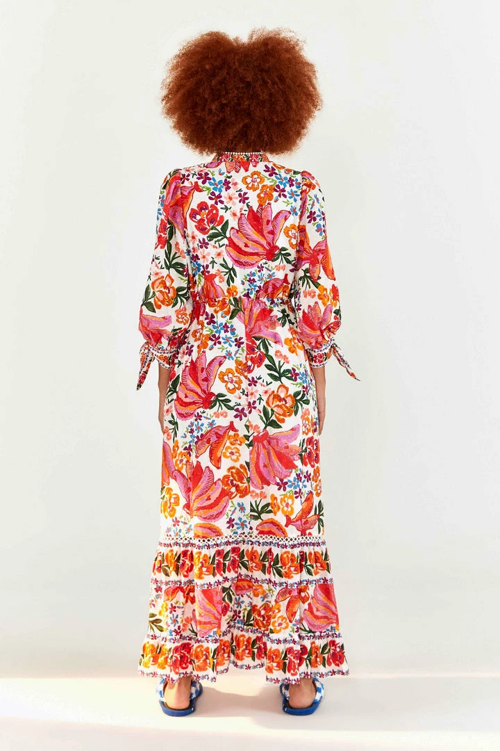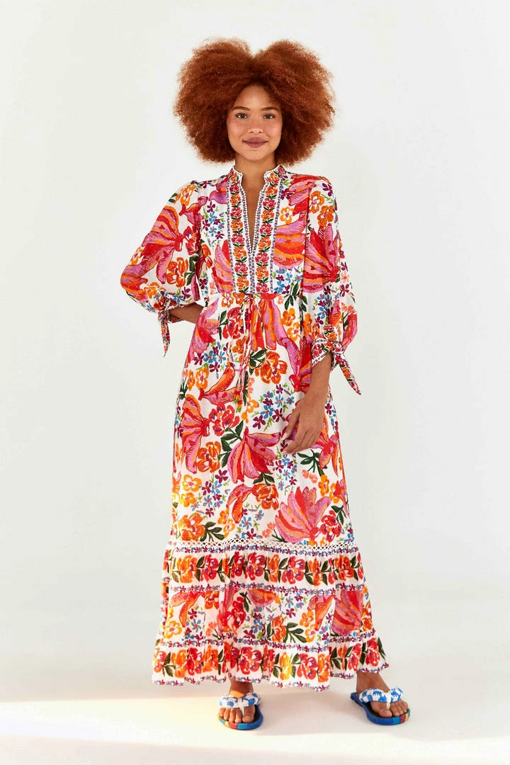 Bring more tropical nature to your wardrobe: the White Spring Bananas Maxi Dress was designed to be your next staple for seasons ahead! It has a cozy fit to give you comfort, and the print is something to turn heads all around. Have you noticed the beaded tassels and lace detailing? So lovely! It matches your bold bags and fresh shoes.