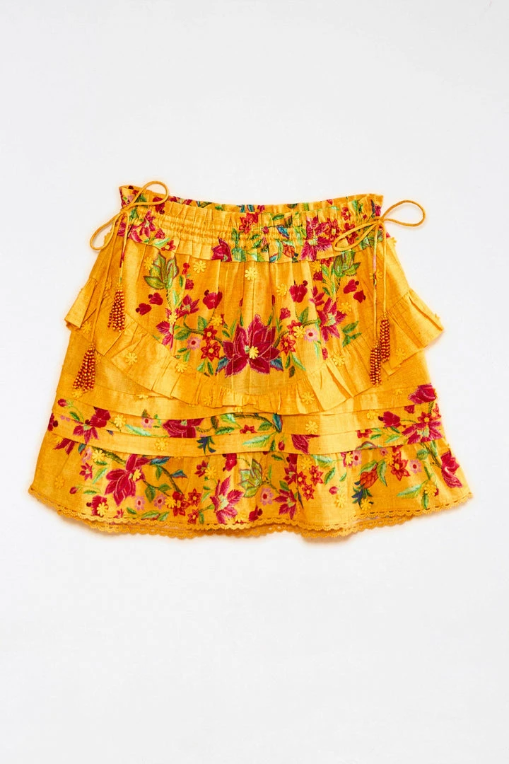 Invite some bold flowers to enjoy the season, baby! The Yellow Flower Dream Layered Mini Skirt is a Summer-ready fave because of its fresh, cozy silhouette. The beaded tassels, flower appliques, and lace detailing bring that romantic touch you’re looking for. A perfect match? The Yellow Flower Dream One-Shoulder Blouse is waiting to keep you and your skirt company <3