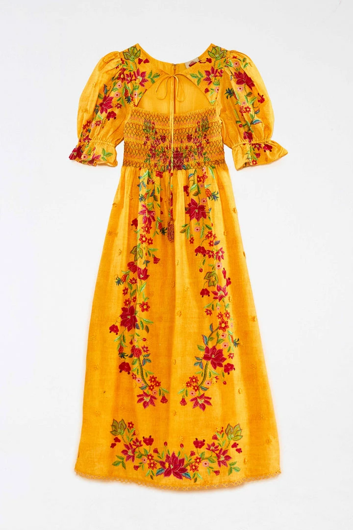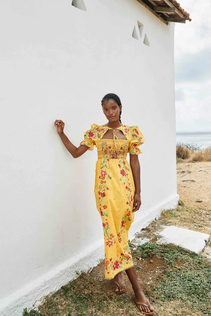 Invite some bold flowers to enjoy the season, baby! The Yellow Flower Dream Puff Sleeve Maxi Dress is a Summer-ready fave because of its fresh, cozy silhouette and cute details. It features a WOW neckline with beaded tassels, a smocked bodice that hugs you, jaw-dropping sleeves, and 3D flower appliques. Invite your FARM Rio sandals, sneakers & mules to complete your sunny look <3